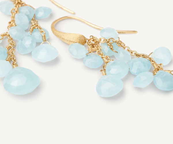Light and elegant, these pendant earrings feature a cascade of selected heart-cut milky aquamarines. With their delicate grace, they add a touch of extraordinary elegance to every look. The 18K yellow gold hook is hand-engraved using the ancient Florentine technique.