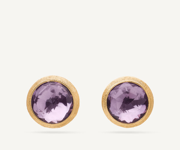 Pop-colored and minimalist, this rose-cut amethyst stud earrings are embellished by an 18kt yellow gold bezel setting, finely hand-engraved using the ancient Florentine technique.
