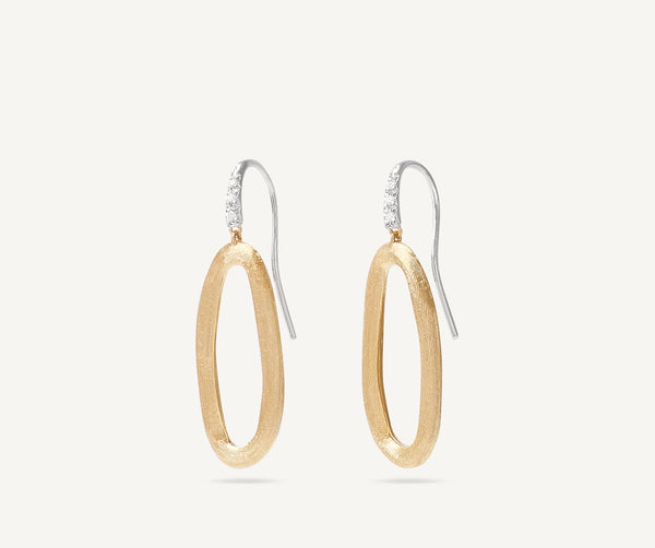 Embellished by a delicate diamond pav�� hook, these irregularly shaped oval pendant earrings are perfect for any occasion. The 18kt yellow gold elements are finely hand-engraved using the ancient Florentine technique.