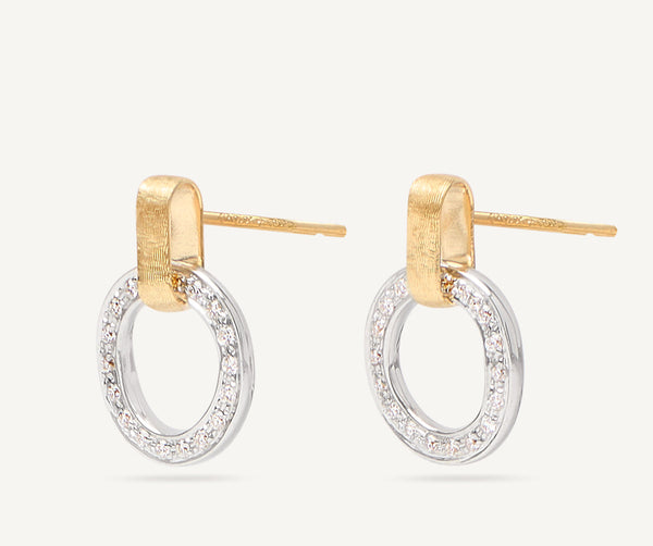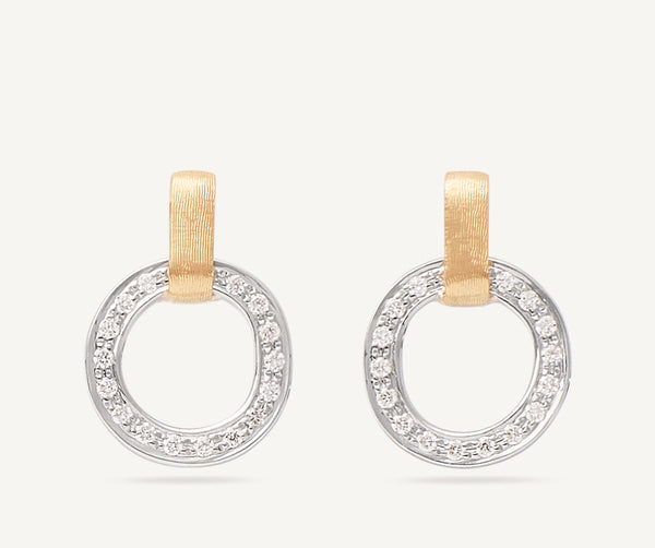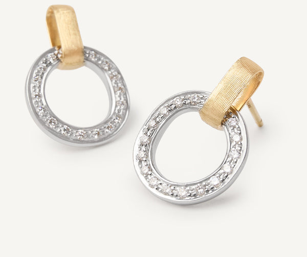 These elegant stud earrings feature a captivating irregular circle in 18kt white gold embellished with brilliant-cut diamond pav��. The yellow gold is finely hand-engraved with the ancient Florentine technique. Light and refined, they are a timeless classic, perfect for adding a touch of light to any outfit.