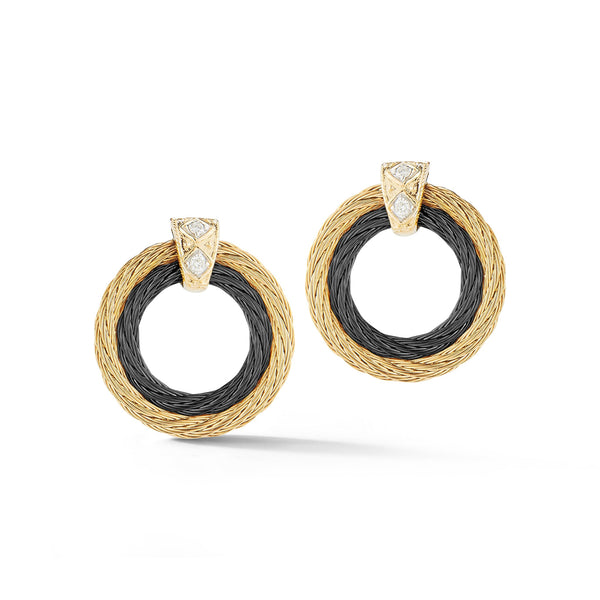 Two rows of cable in an open circle wreath design with a station of diamonds at the top.