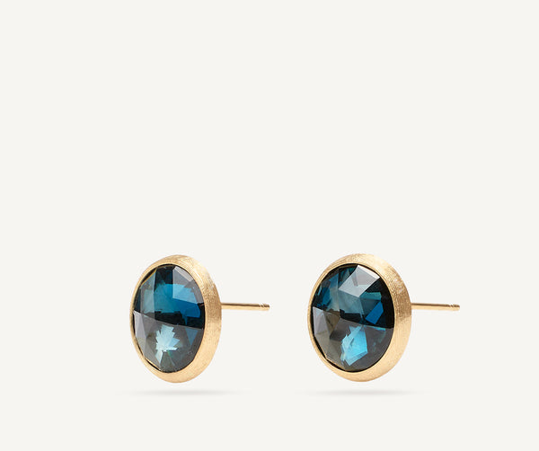 An oversized version of the iconic stud earrings from the Jaipur Collection, these earrings are characterised by a pair of highly-prized London Blue topazes.