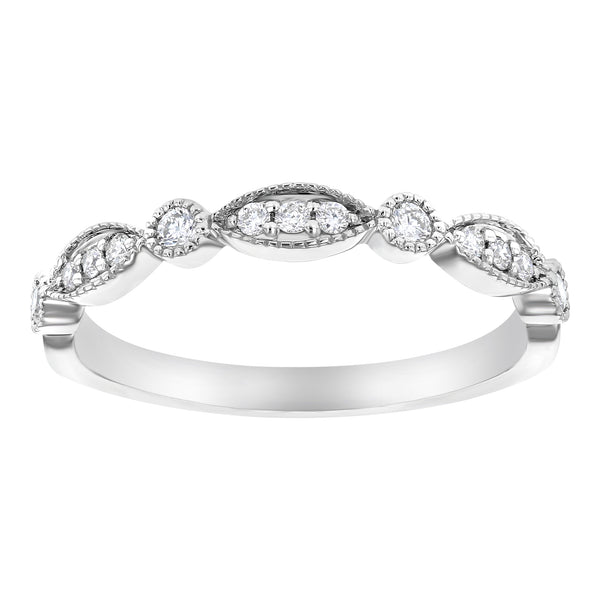 14K white gold semi-eternity vintage inspired art deco band ring set with 0.19 ct. round diamonds.
