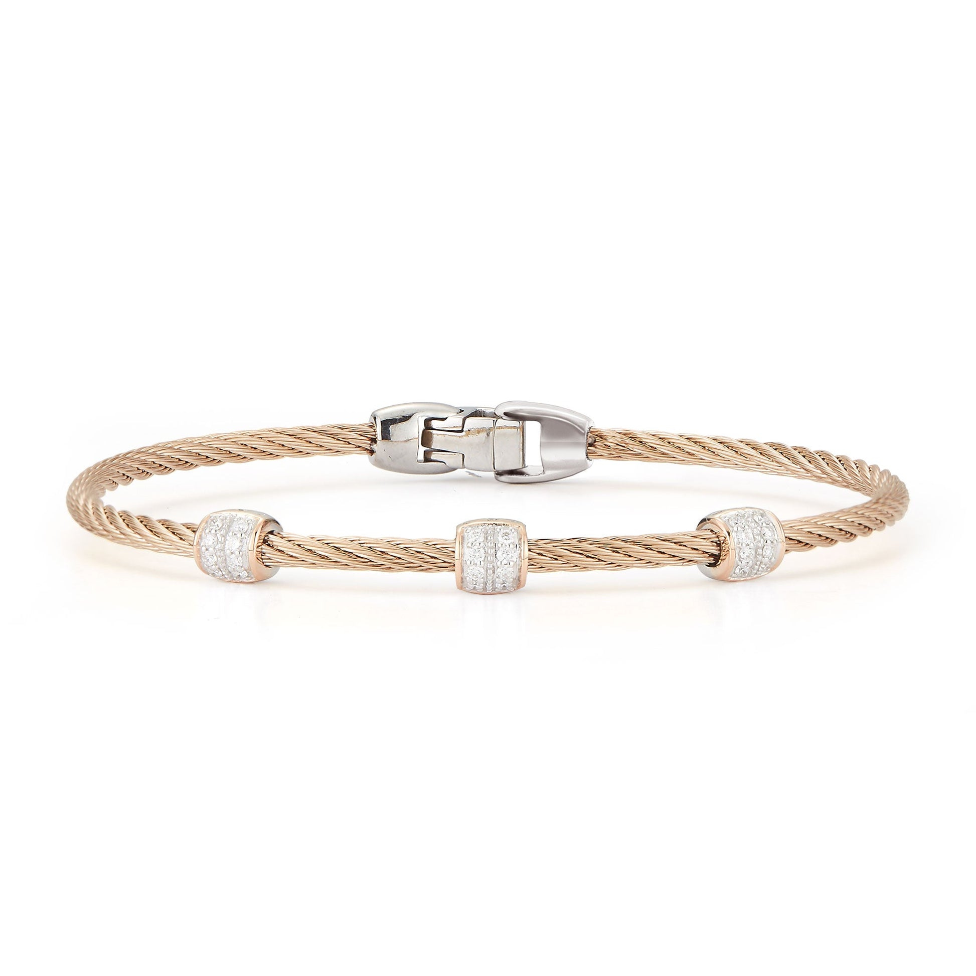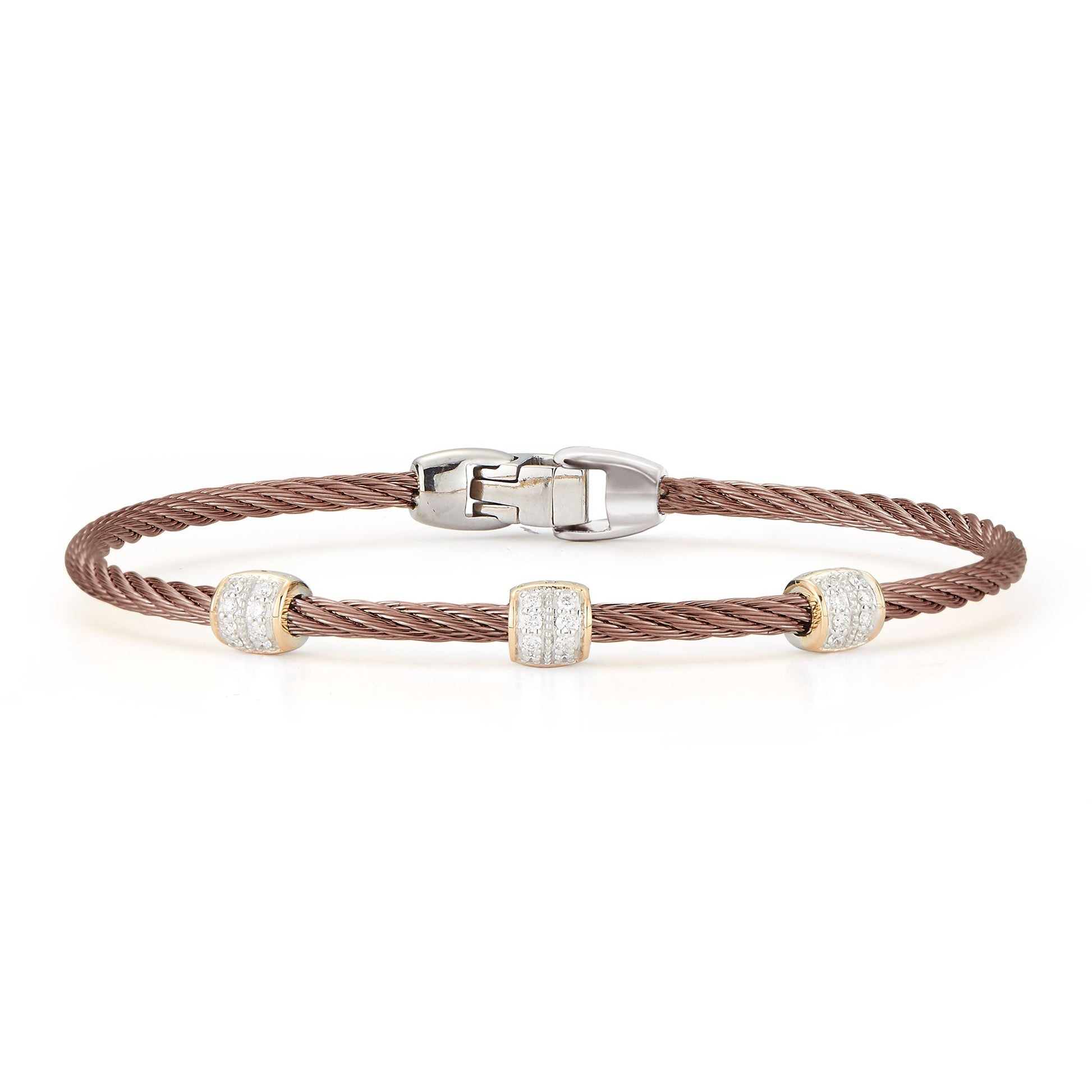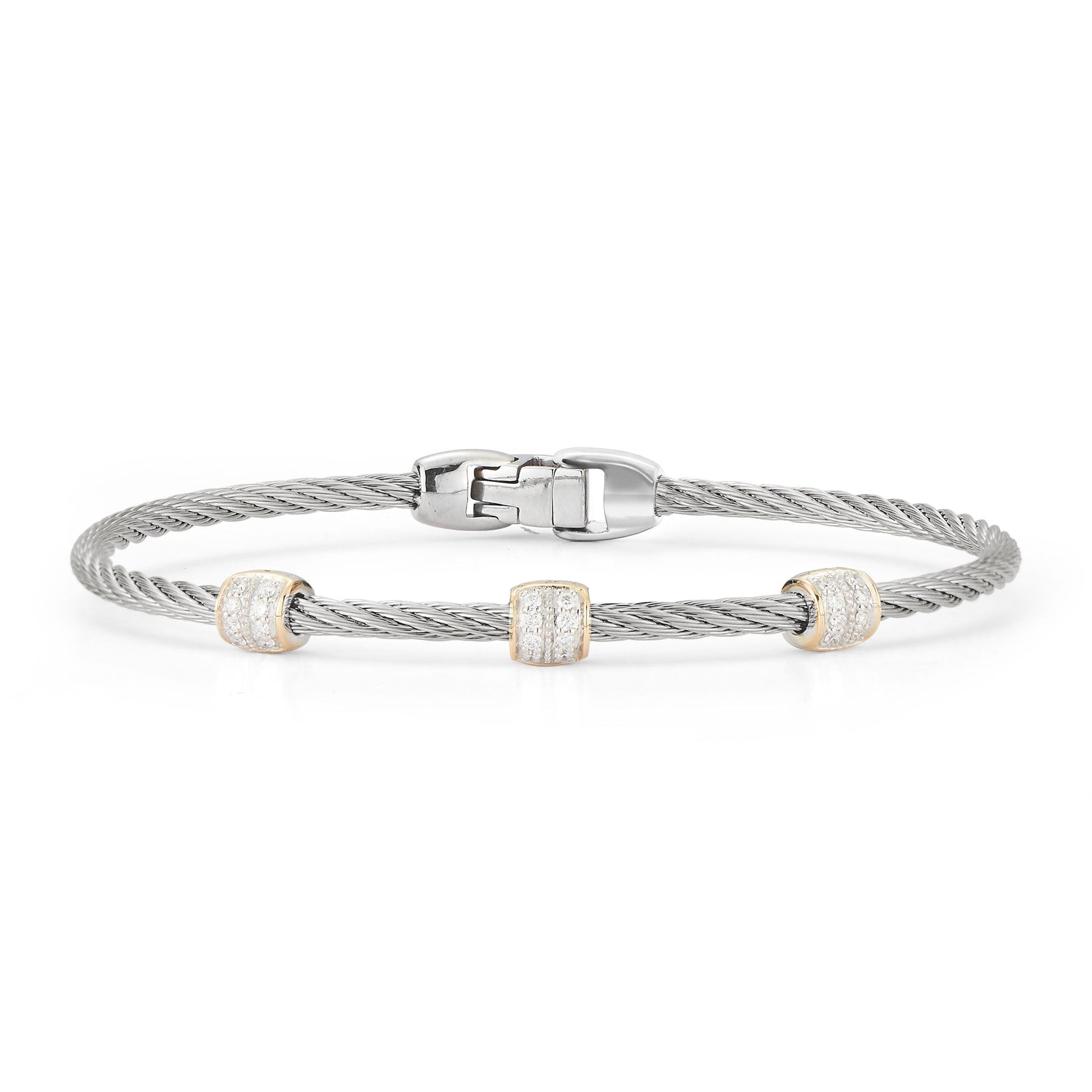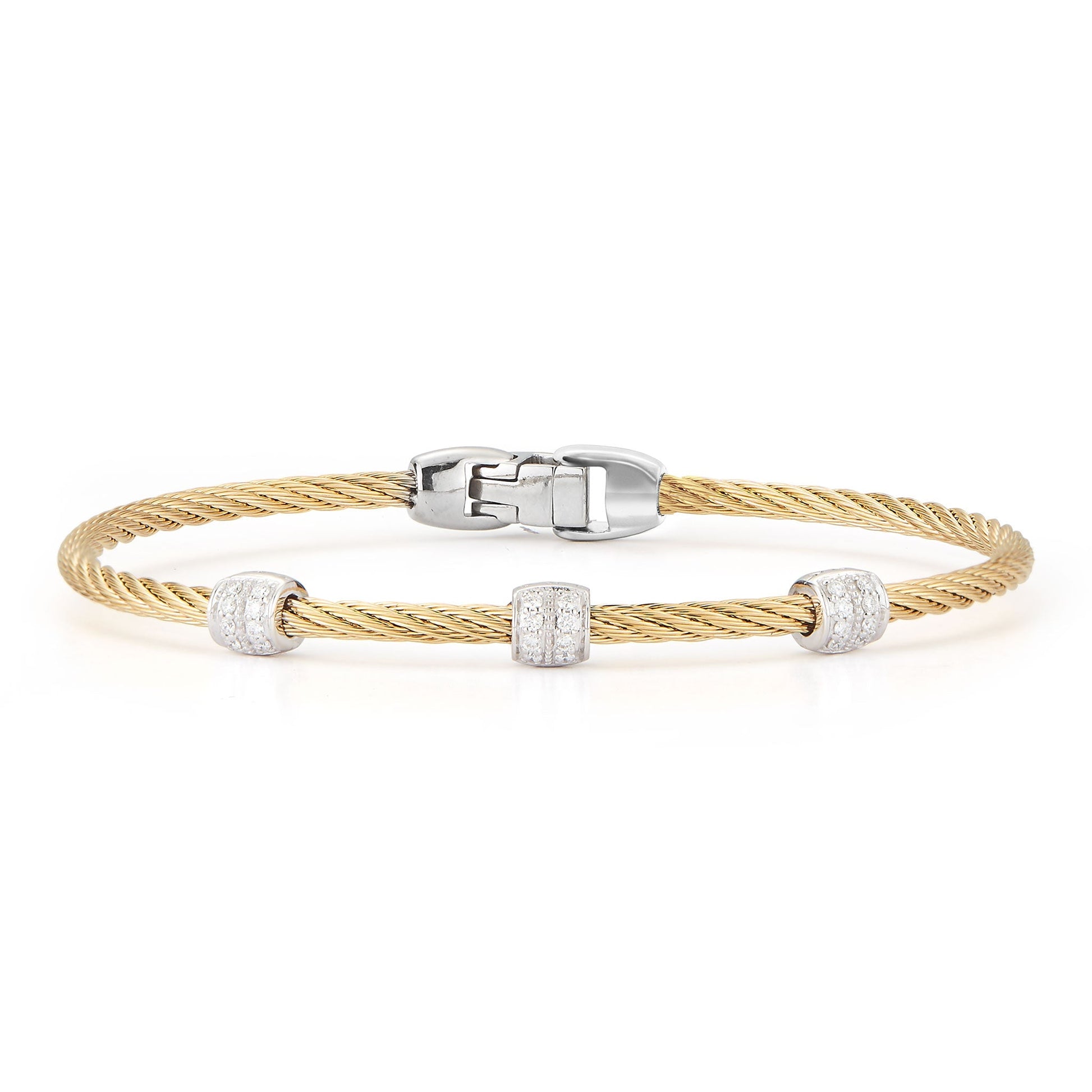 A single band of cable with a triple barrel stations of diamonds and 18kt gold.
