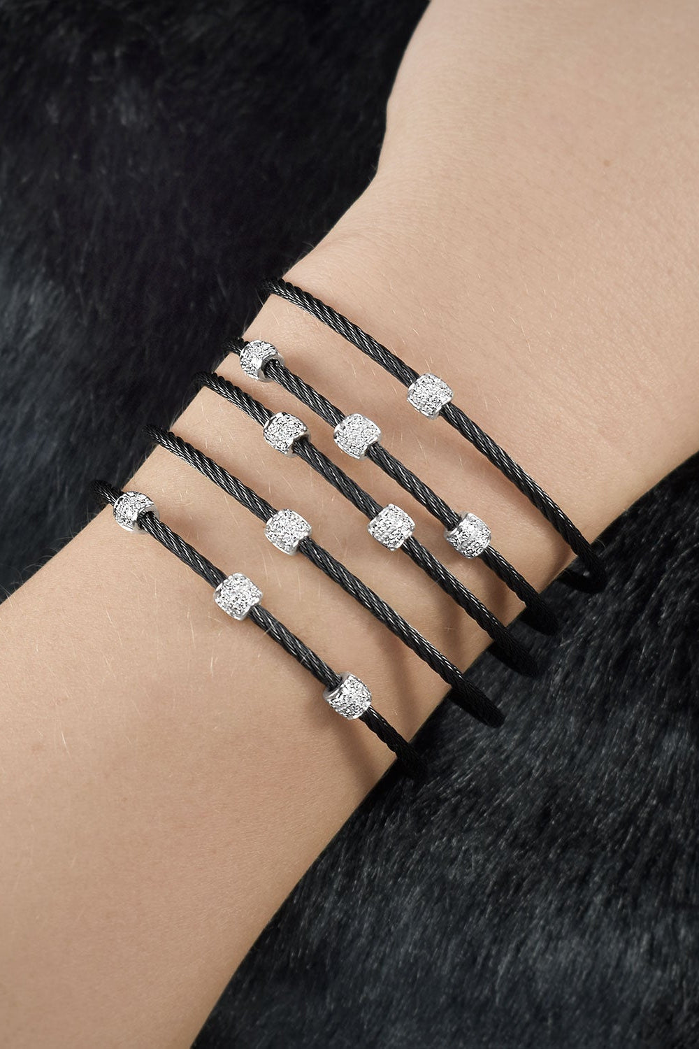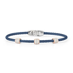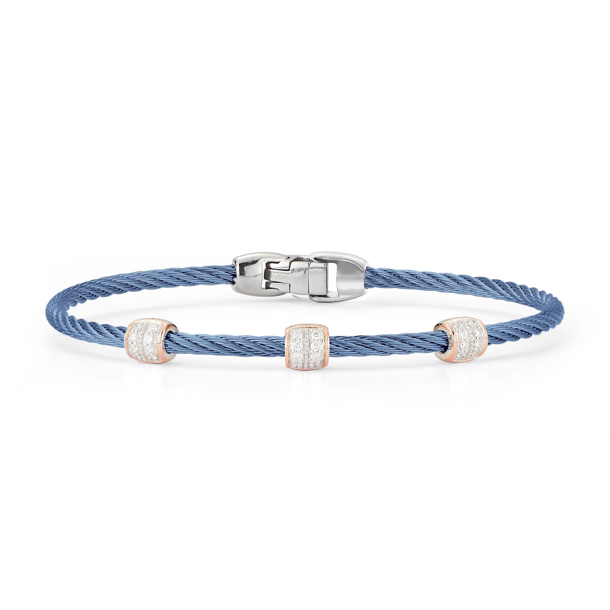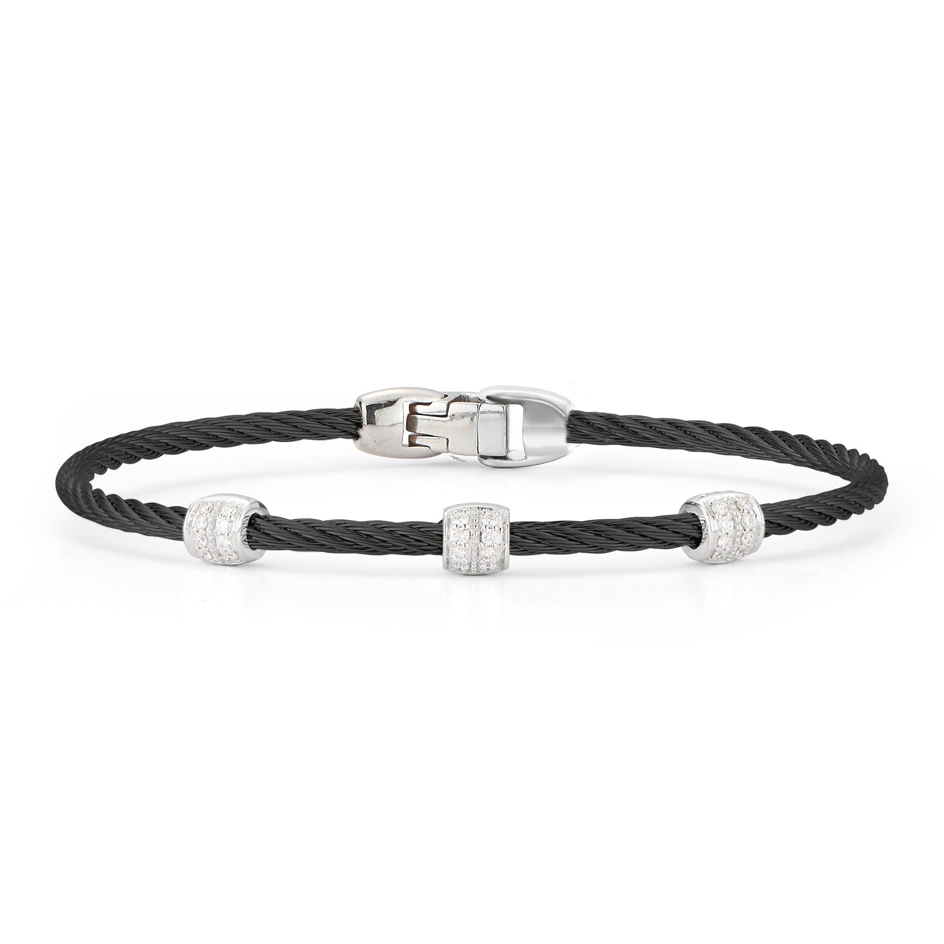 A single band of cable with a triple barrel stations of diamonds and 18kt gold.