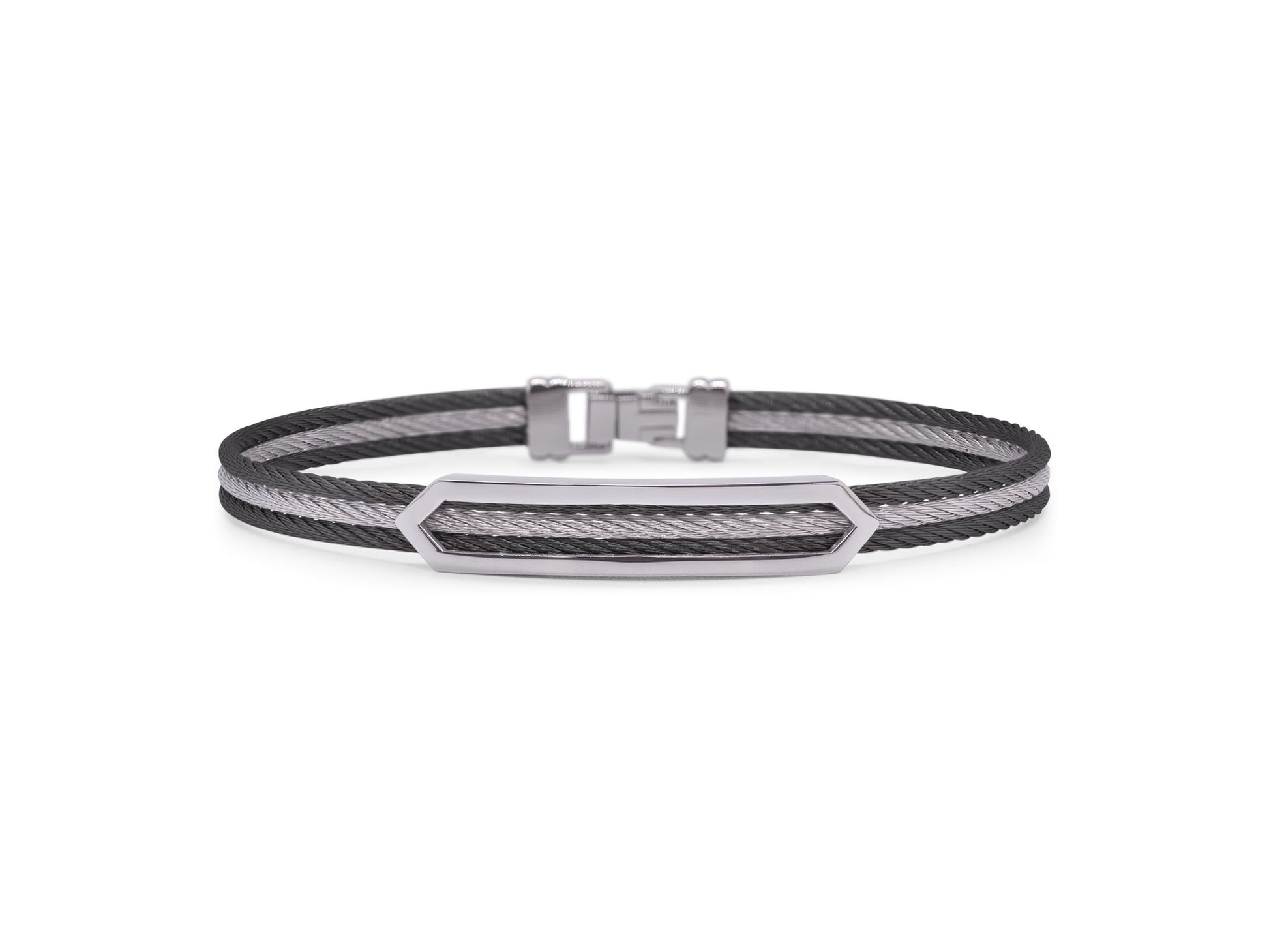 Two-Tone Stainless Steel BLACK/GREY Bangle Bracelet Length 7.5