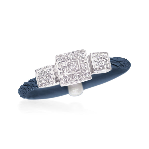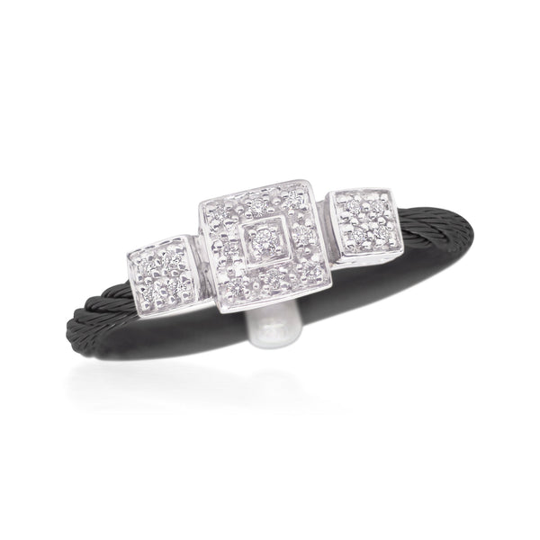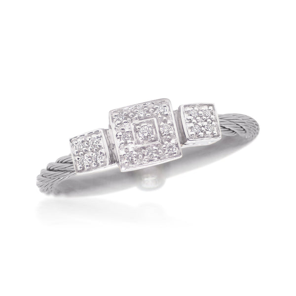 Diamonds and 14kt gold are arranged in a triple square design with a single cable band.