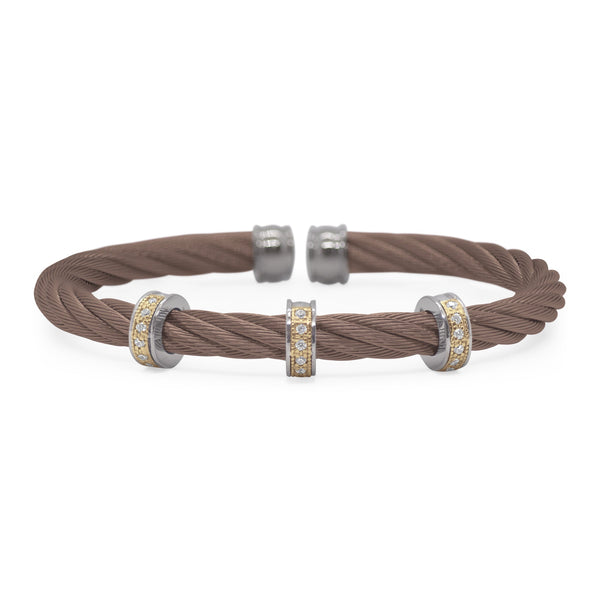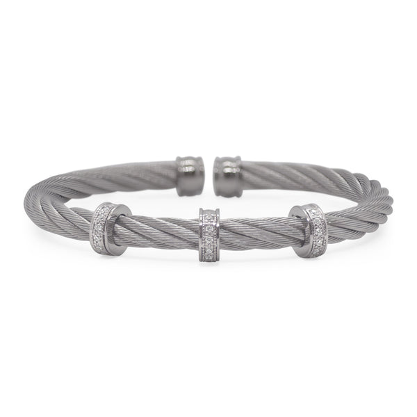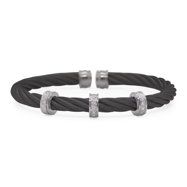 A thick 5mm cable cuff with triple barrel stations of diamonds.