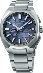 Astron GPS Solar. With the strong, sleek lines of the Seiko Astron, the world’s first commercially available quartz watch, today’s Astron is designed for a new generation of leaders, breaking through to the future with excellence in both innovation and style. Strong and distinctive, with its perfectly sculpted octagonal titanium bezel, this dynamic timepiece combines solid tailoring with the highest degree of accuracy possible in a wristwatch. Powered by Seiko’s new GPS solar caliber 3X62, with the improved receiver sensitivity required by the metallic bezel, this exceptional watch is GPS controlled for high-speed time and time zone adjustment to 39 time zones, and includes an in-flight mode and perpetual date calendar correct to the year 2100. To ensure smooth operation, the watch is equipped with a signal reception result indicator and power save function. The solar cell is powered by light energy, with no battery change required. With a new pressed pattern inspired by crystals in homage to the original quartz Astron, the blue dial features a multi-function indicator subdial for easy mode reference, as well as sharp and highly visible three-dimensional applied indices, and LumiBrite hands and markers. Crafted of light and durable titanium, with a super-hard coating for added endurance, this superb timepiece also offers a sapphire crystal with super-clear coating, secure screwdown caseback and tri-fold push button release clasp with smart-adjuster function. 10 bar, 100M Water Resistant