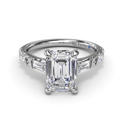A unique combination of baguette and round diamonds blend together to create harmony. This design can be customized based on stone shape and metal preference. Price is reflective of a standard ring size range. [/product_description] [short_description]