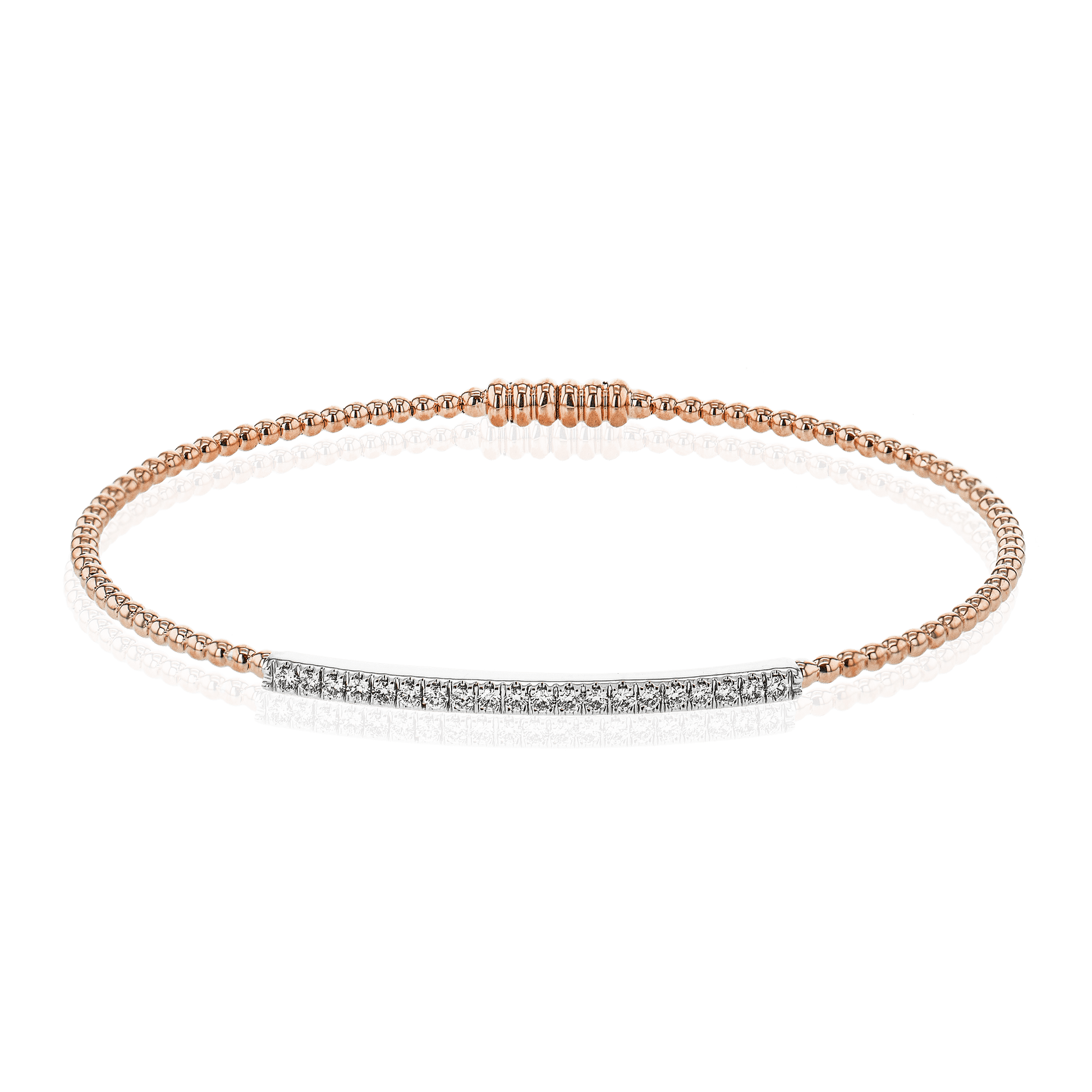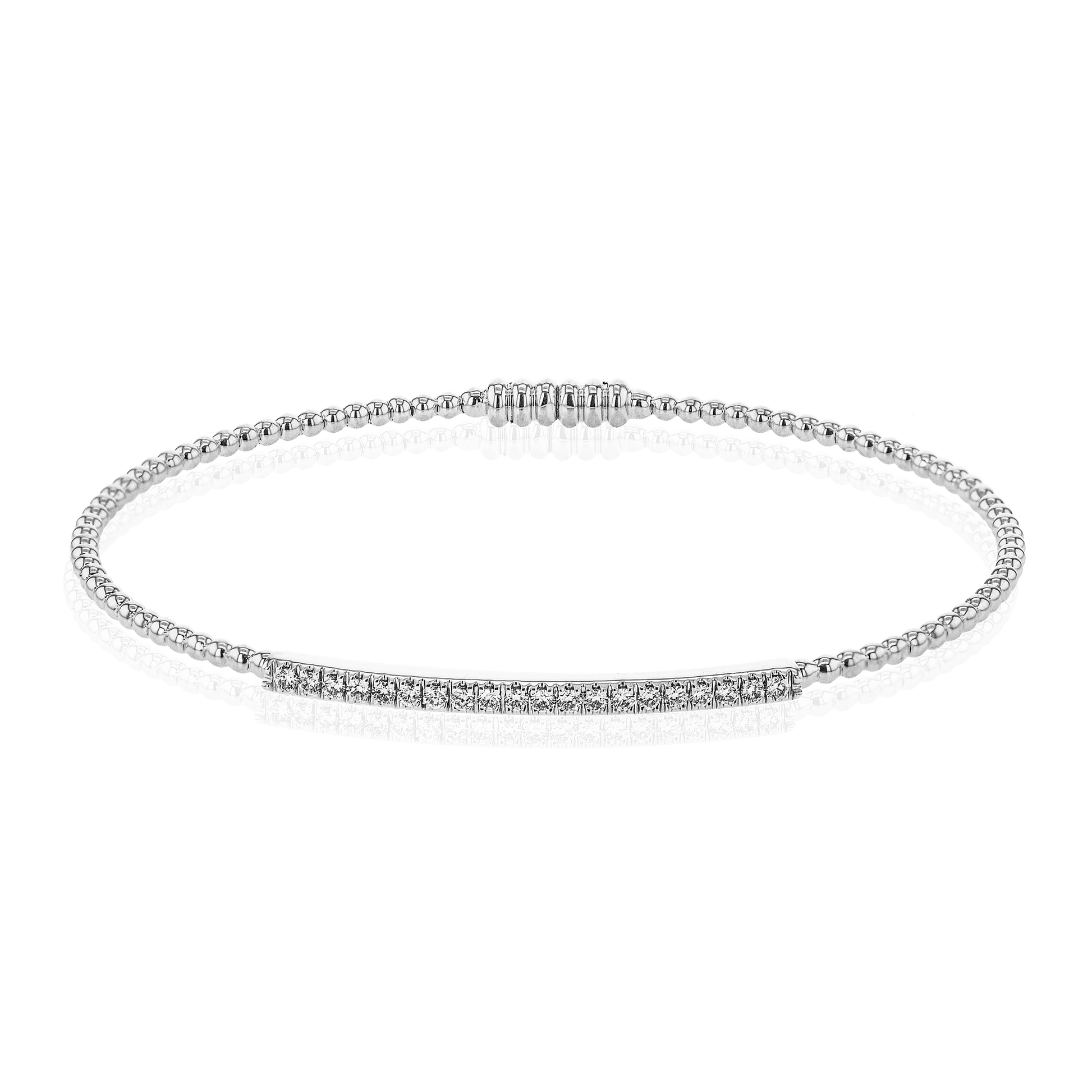 This beautiful beaded bangle features a bar of shimmering diamonds and a magnetic closure.
