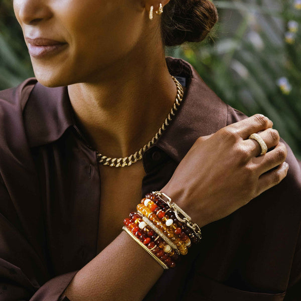14k Dark Carnelian Bracelet with Diamond Rondelle - 8mm