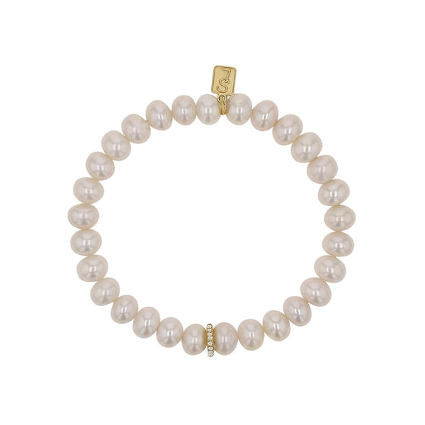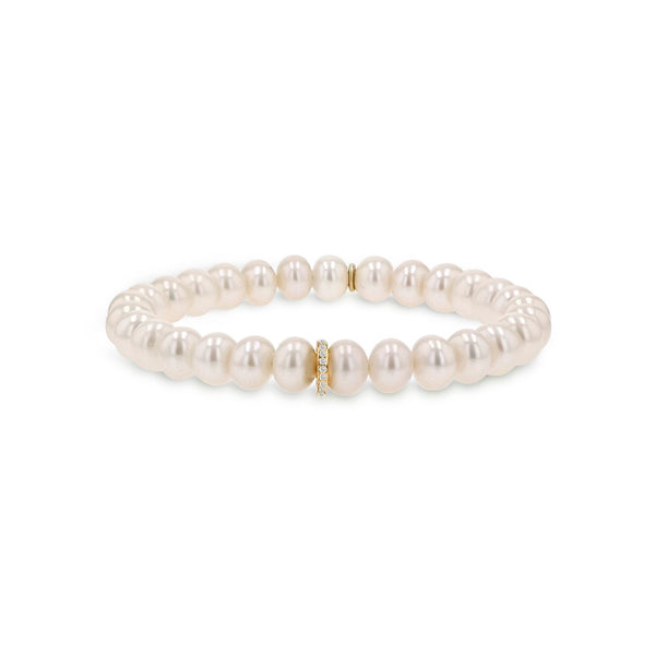 14k Gold White Pearl Bracelet with Diamond Rondelle - 8mm