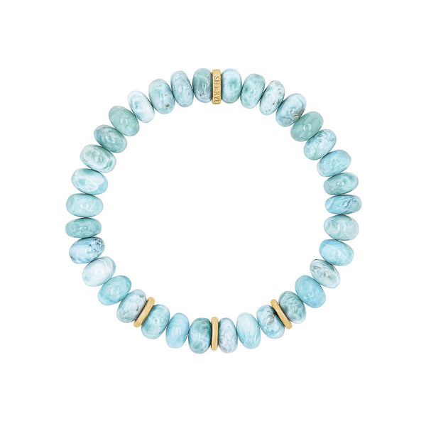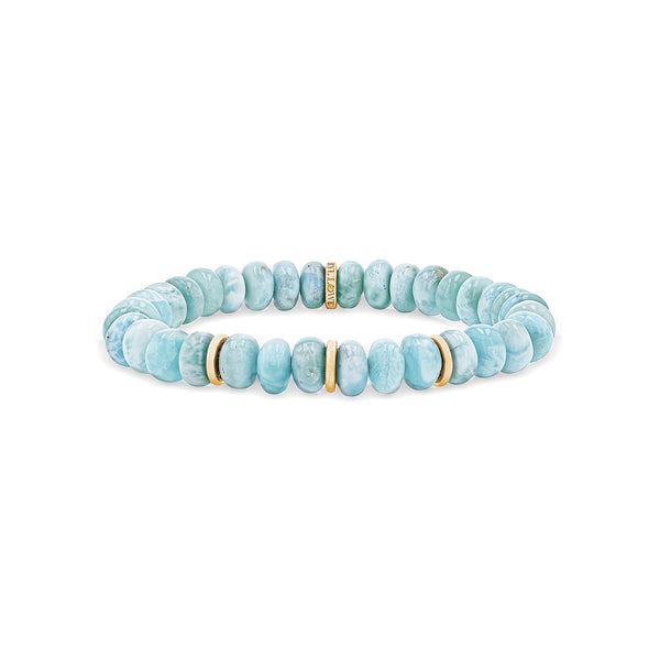 14k Larimar Beaded Bracelet with 3 Rondelles - 8mm