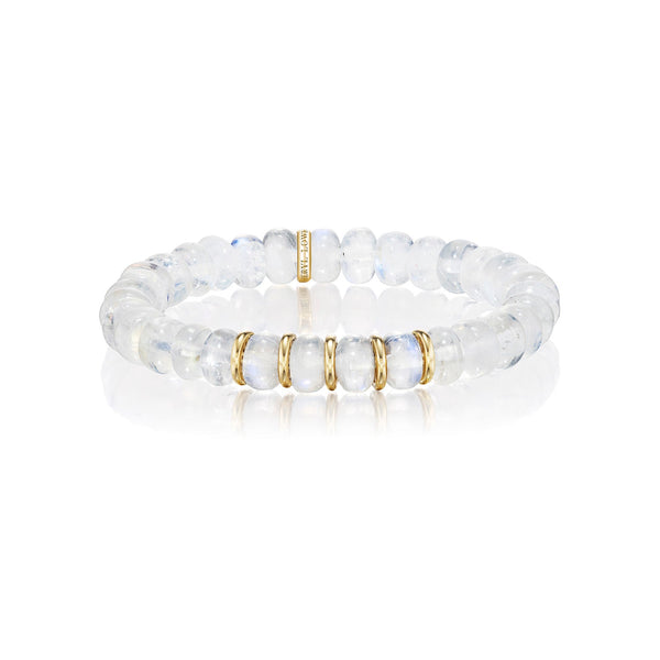 14k Moonstone Beaded Bracelet with 5 Rondelles - 8mm