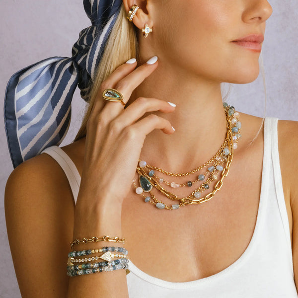 14k Ombre Aquamarine Mini Bracelet with 3 Round Diamond beads - 5mm