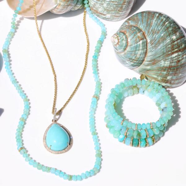 14k Peruvian Opal Beaded Bracelet with 5 Diamond Rondelles - 9mm