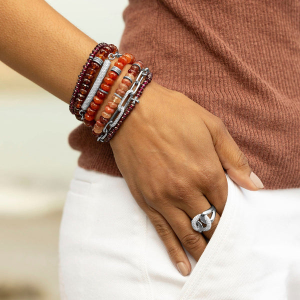 Andesine Labradorite Bracelet with Diamond Rondelles - 8mm