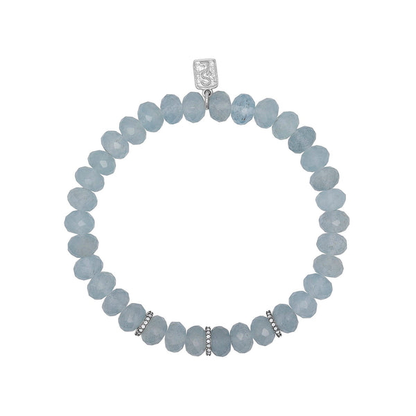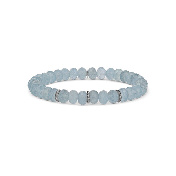 Aquamarine Bracelet with 3 Diamond Rondelles - 7mm
