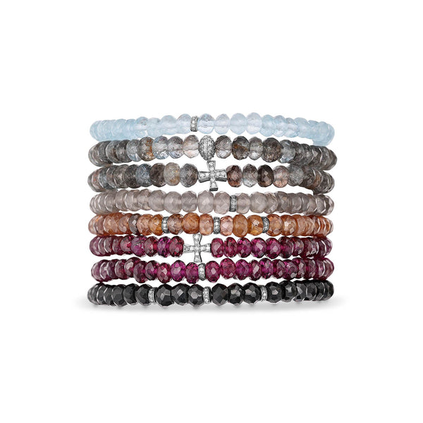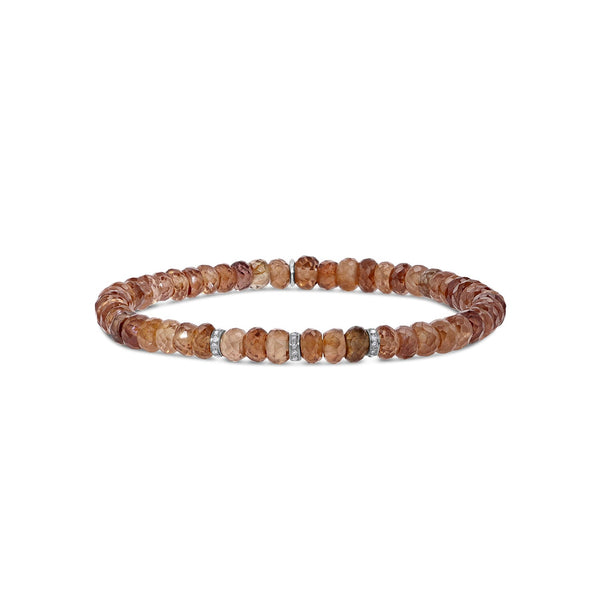 Brown Zircon Mini Bracelet with 3 Diamond Rondelles - 5mm