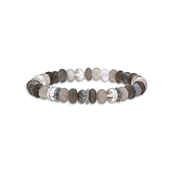 Grey Mix Gemstone Bracelet with 3 Diamond Rondelles - 8mm
