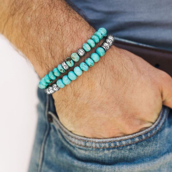 Men's Mr. LOWE Turquoise Bracelet with Silver Bicone Bead - 8mm