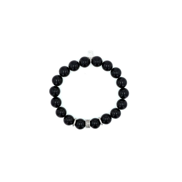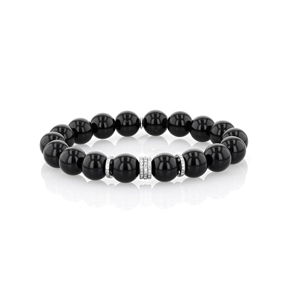 Onyx Bead Bracelet with 5 Diamond Rondelles - 10mm