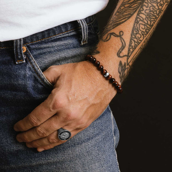 Men's Mr. LOWE Red Tiger's Eye Bracelet with Silver Rondelle - 8mm