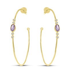 Lady's White 14 Karat Semi Oval Wire Hoop Earrings BY BREVANI E4301W2=0.78tw OV White Topaz10=0.15tw Round G/H In Color SI-1 In Clarity Diamonds