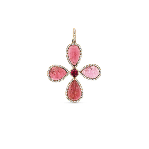 14k Pink Tourmaline & Diamond Cross Pendant - One of a Kind