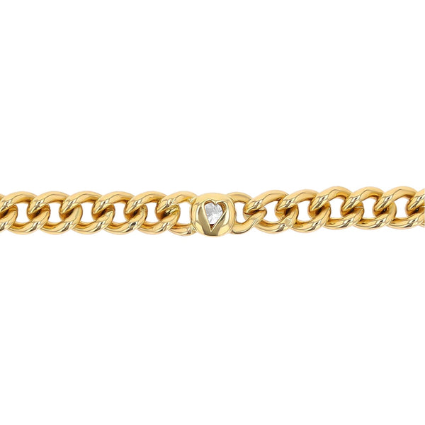 14k Gold Curb Chain Bracelet with 4 Bezel Diamonds