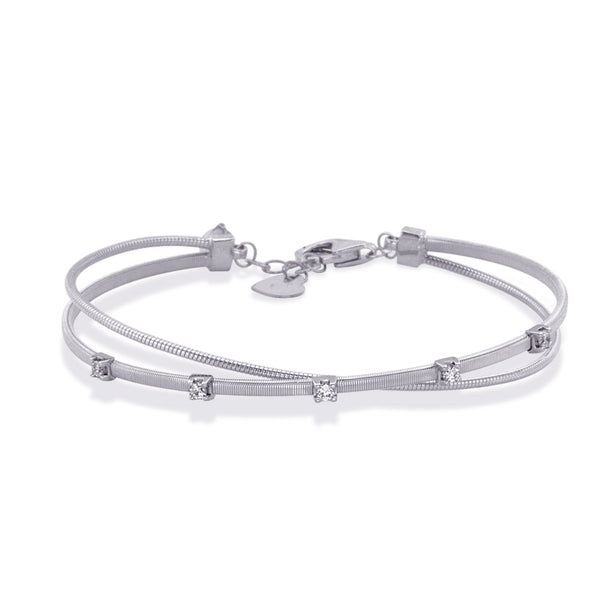 This Bracelet is available in 14K White Gold. There are a total of 5 stones. There are Round with a total carat weight of 0.2 set in a setting.