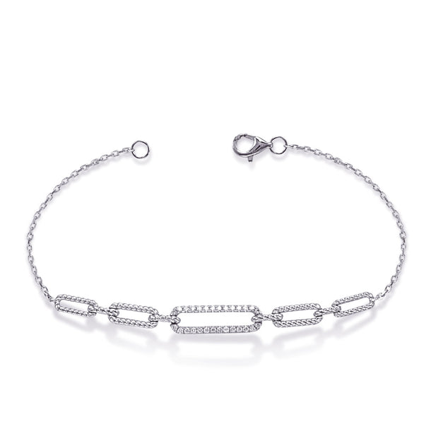 This Bracelet is available in 14K White Gold. There are a total of 28 stones. There are Round with a total carat weight of 0.2 set in a Prong Set setting.