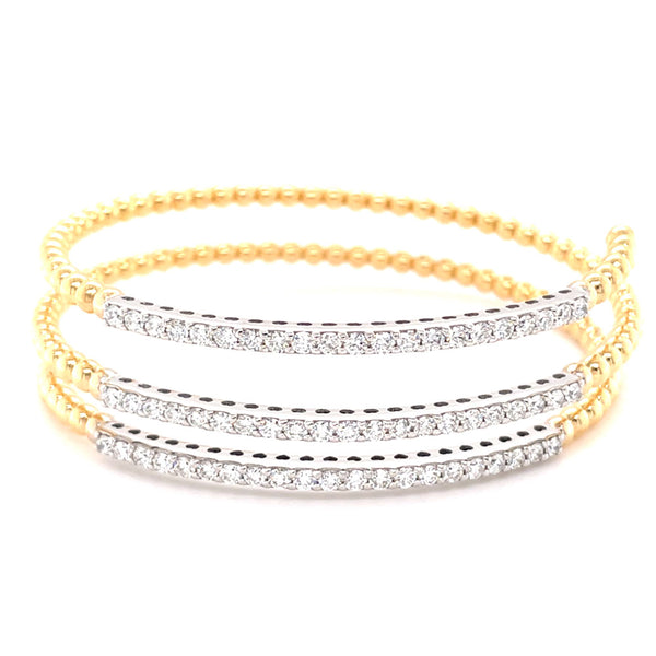 This Bracelet is available in 14K Yellow & White Gold. There are a total of 63 stones. There are Round with a total carat weight of 1.86 set in a setting.