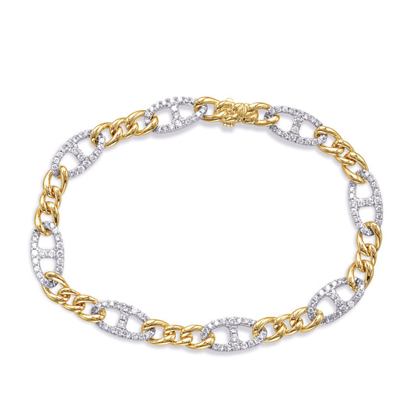 This Bracelet is available in 14K Yellow & White Gold. There are a total of 160 stones. There are Round with a total carat weight of 1.54 set in a Micro Prong setting.