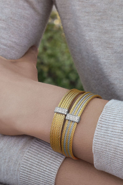 A 5-row mini cuff in a striped design with a center station of diamonds.