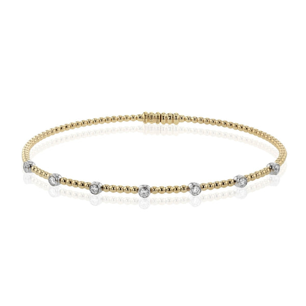 This beautiful bangle features an elegant design adorned with sparkling bezel-set diamonds.