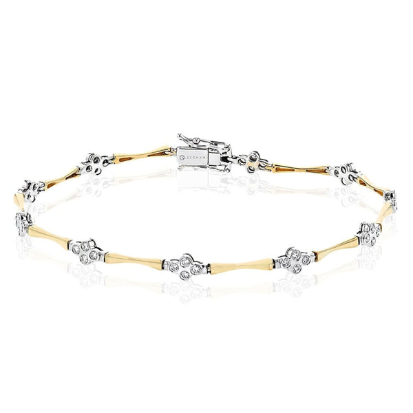 This bracelet showcases a graceful blend of yellow and white tones, accented with clusters of sparkling diamonds. Its delicate yet stylish design makes it a versatile piece for both everyday wear and special occasions.