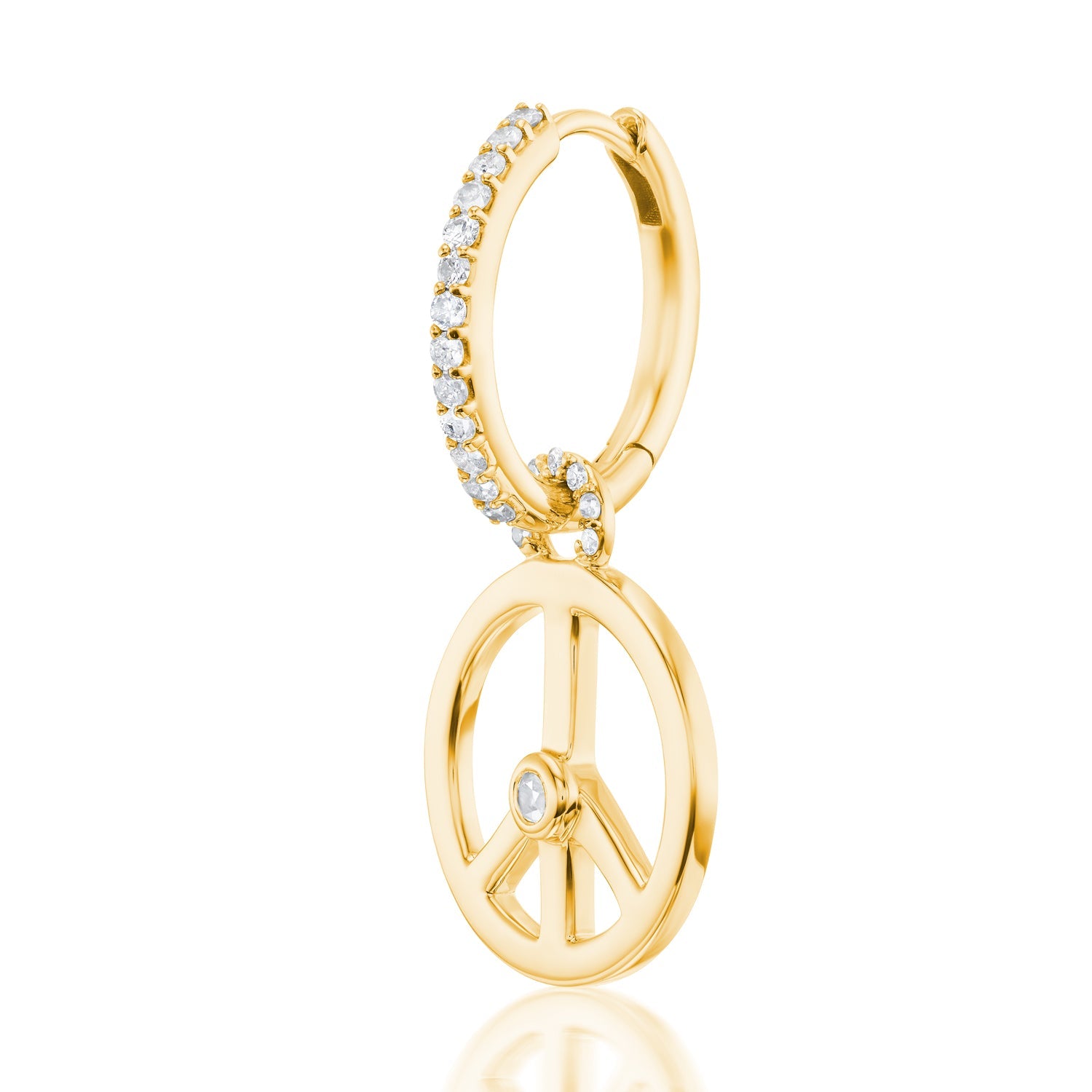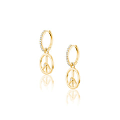 14k Peace Sign Charm Drops on Diamond Huggie Hoop Earrings