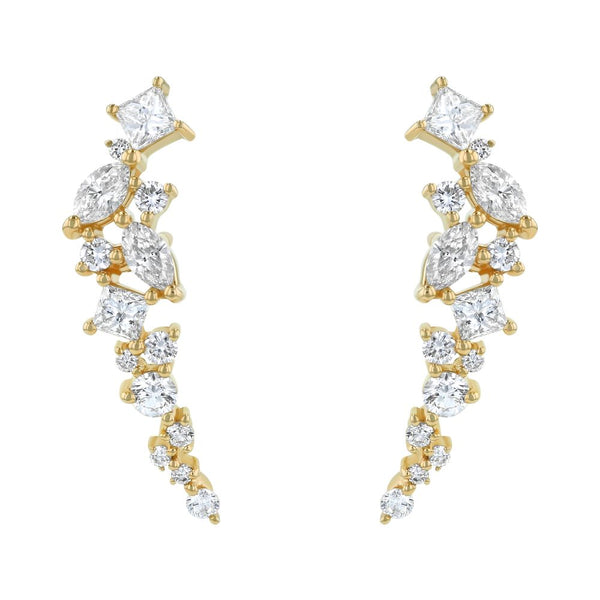 14K yellow gold ear climber style earrings set with 1.00 ct. princess, marquise and round diamonds. Part of our Ear Climbers collection.
