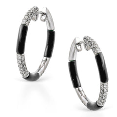 These modern earrings feature an elevated monochromatic design with onyx and sparkling white diamonds.