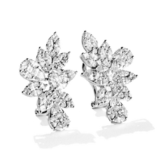 These eye-catching earrings feature a highly intricate design set with a sparkling combination of marquise, princess and pear diamonds.