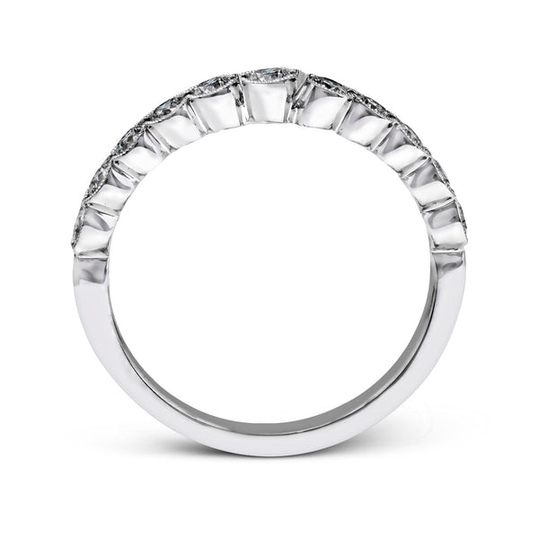 This stunning band features an array of sparkling round white diamonds in a bezel setting.