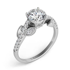 This Engagement Ring is available in 14K White Gold. There are a total of 22 stones. There are Marquise with a total carat weight of 0.12 set in a Bezel Set|Micro Prong setting.There are Rounds stones with a total carat weight of 0.15 set in a Bezel Set|Micro Prong.