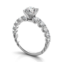 This Engagement Ring is available in 14K White Gold. There are a total of 10 stones. There are Rounds with a total carat weight of 0.7 set in a Prong Set setting.