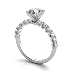 This Engagement Ring is available in 14K White Gold. There are a total of 12 stones. There are Rounds with a total carat weight of 0.51 set in a Prong Set setting.