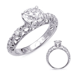 This Engagement Ring is available in 14K White Gold. There are a total of 6 stones. There are Rounds with a total carat weight of 0.06 set in a Bezel Set setting.