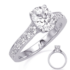 This Engagement Ring is available in 14K White Gold. There are a total of 12 stones. There are Rounds with a total carat weight of 0.54 set in a Micro Prong setting.