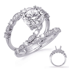 This Engagement Ring is available in 14K White Gold. There are a total of 40 stones. There are Rounds with a total carat weight of 0.37 set in a Micro Pave|Prong Set setting.