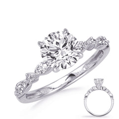 This Engagement Ring is available in 14K White Gold. There are a total of 14 stones. There are Rounds with a total carat weight of 0.2 set in a Micro Prong setting.